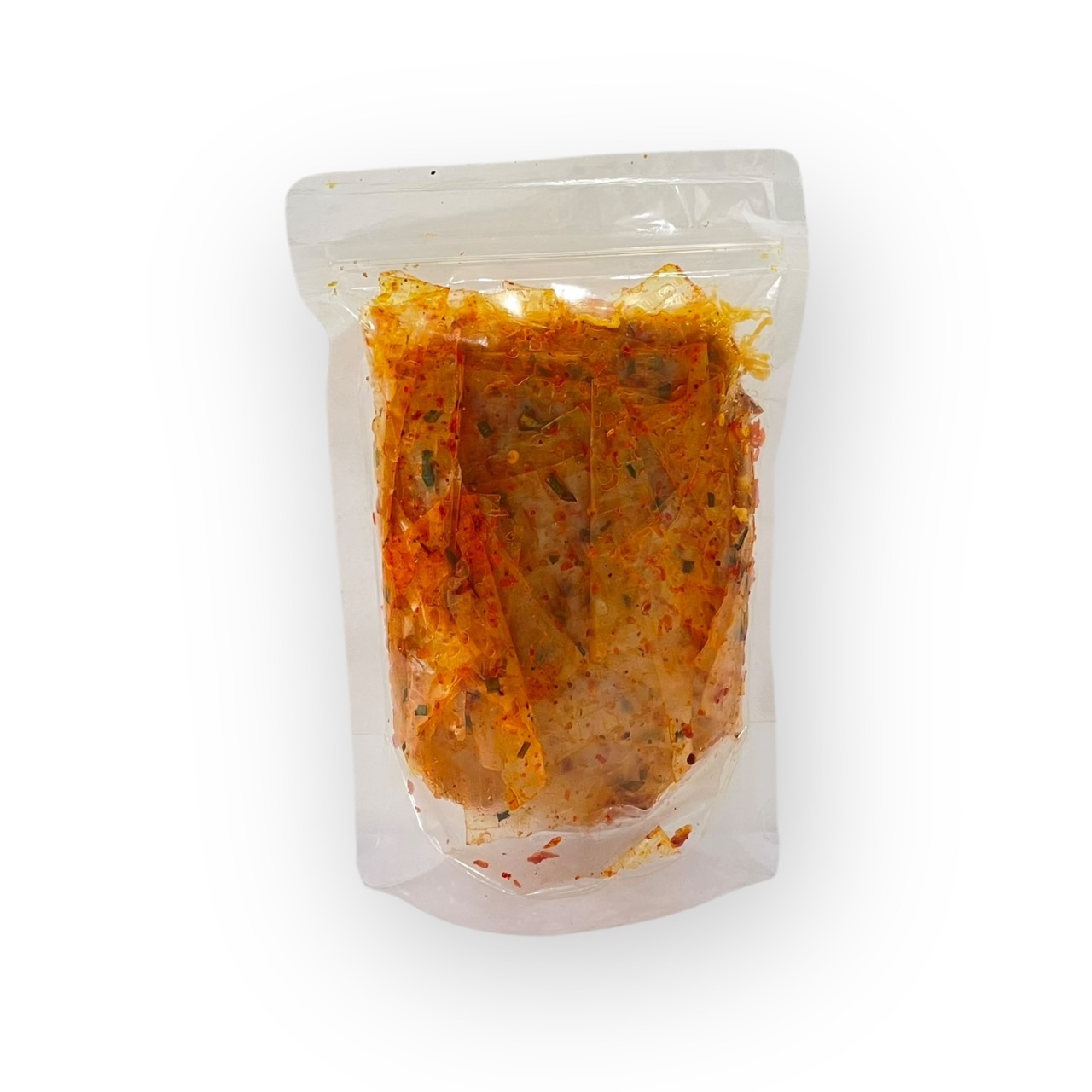 Chỉ cần mở gói bánh, bạn sẽ ngay lập tức bị chinh phục bởi mùi thơm nức mũi. Vị cay nồng pha lẫn ngọt nhẹ và độ dai của bánh tráng. Khiến người ăn cứ muốn nhâm nhi mãi không thôi.