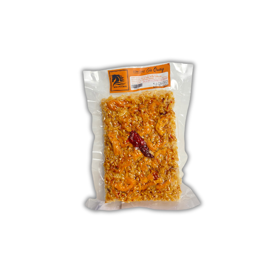 Một gói cơm cháy gà quay là sự hòa quyện tuyệt vời giữa cơm cháy giòn rụm và gà xé đậm đà. Kèm theo đó là sốt đặc biệt được làm từ nước mắm Nha Trang nguyên chất, hành phi thơm, ớt tươi và một chút tỏi băm. Tất cả tạo nên hương vị khó quên: vừa mặn, vừa ngọt, lại cay cay – rất thích hợp để dùng làm món ăn vặt, món lai rai trong những buổi tụ họp bạn bè, hay đơn giản là để nhâm nhi khi làm việc.