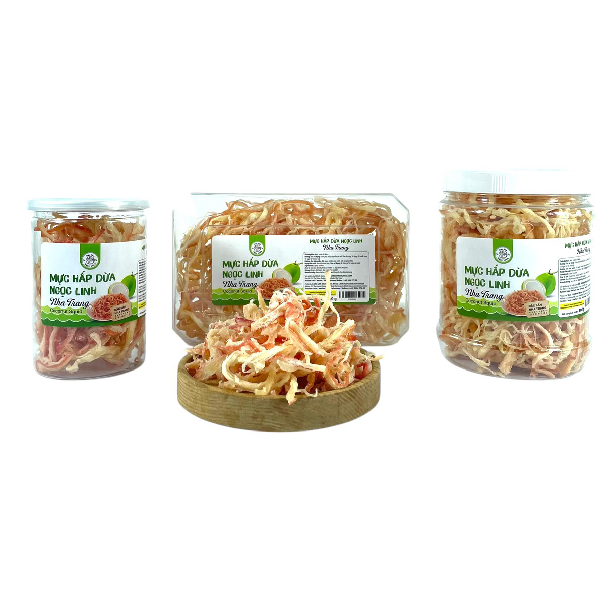 Nếu bạn là người yêu thích hải sản, chắc chắn không thể bỏ qua món mực hấp dừa Nha Trang. Một trong những sản phẩm trứ danh mang hương biển cả đầy cuốn hút. Đây là sự kết hợp hoàn hảo giữa mực tươi ngọt thịt. Và béo ngậy, thơm dịu của nước dừa tươi. Tạo nên một món ăn vừa đơn giản nhưng lại đầy sức hấp dẫn. Tại Đặc Sản Nha Trang Ngọc Linh. Chúng tôi mang đến cho bạn món mực hấp dừa Nha Trang chuẩn vị. Được chế biến từ nguồn nguyên liệu tươi ngon, chất lượng cao, vệ sinh an toàn thực phẩm. Và giữ nguyên hương vị đặc trưng.